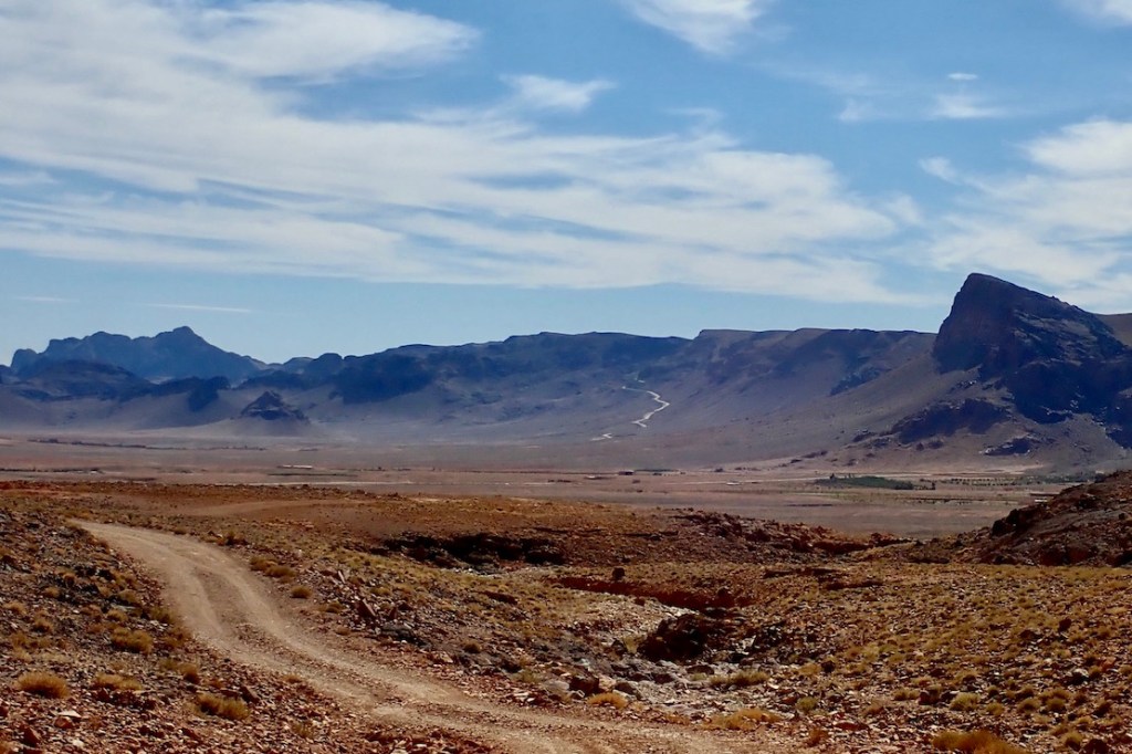 Elsewhere, right across the area I know well (not the north), pistes and even roads are still missing (Route MW6 to Labouriat) while many more pistes have become roads, in some cases over a decade ago, eg: Routes MW1/2/7 to Mseid; Route MH6 from Aguim as well as Routes MH7/8 south and west of Asakoun and Route MH4 Jebel Saro, etc, etc. Old edition and new, Route MS6 (left) is shown as a secondary road all the way to the Sidi Ali Tafraoute (bafflingly shown as a well: ‘Hassi Fougani’ on the map). Imagine arriving at the notorious Rheris crossing in your campervan! But west of Sidi Ali they miss out the well-used track carrying on directly to Zagora just south of Oum Jrane. And I’ve just noticed in the WS panel on both editions they’ve shown the 1000-km Tindouf Route as sealed all the way (via the PFZ no less) to Zouerat, complete with bypass! No wonder Moroccan hats are confiscating this map at the border. You can understand them not keeping up with all the asphalting, but the practise of calling a piste a road is hard to fathom. Where do they get this information – QAnon? These are just a few of the glaring errors that jumped out at me. There are loads more in the Anti Atlas, plus areas depicted as forest which are barren mountain hillsides and contour shading that jumps in 300- and then 600-metre stages. That means within one shade the elevation could change by nearly 2000 feet. Not a great map for push biking then.
