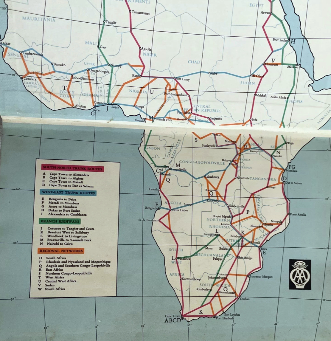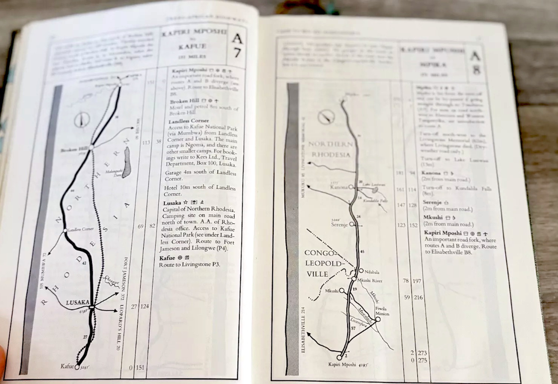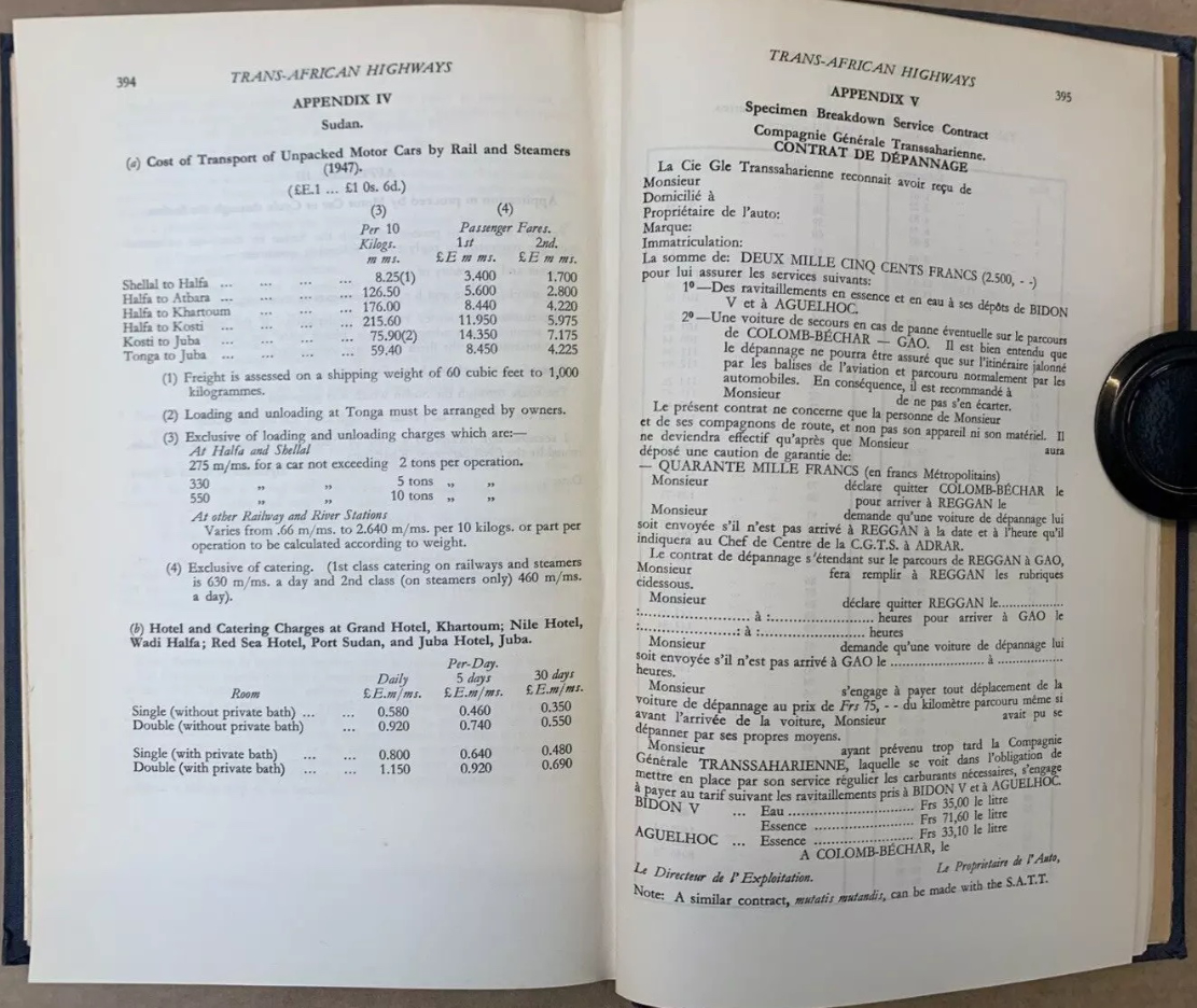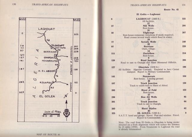 From Kenya to Morocco you’re reminded this era was marked by widespread anti-colonial unrest. It’s also interesting to learn of the huge £1000 bond (2500F + 40,000F) for the Contrat de Depannage (assistance) required to cross the French-controlled Sahara to cover the cost of possible rescues. The Trans-Africa Highways route guide (below) was first published in 1949 by the Automobile Association of South Africa. There are loads of copies online from £25: I bought the final, 5th edition published in 1963, by which time the vast majority of the European colonies (list with dates) were independent. The preface to the 5th edition explained the laborious task of redrawing all the guide’s maps to conform with the new nations. The guide closely resembles the French Shell Guide to the Sahara published since the mid-1930s: page after page of annotated strip maps along a given route. Knud and Svend used the 1949 edition of Trans-African Highways which Anders still owns.