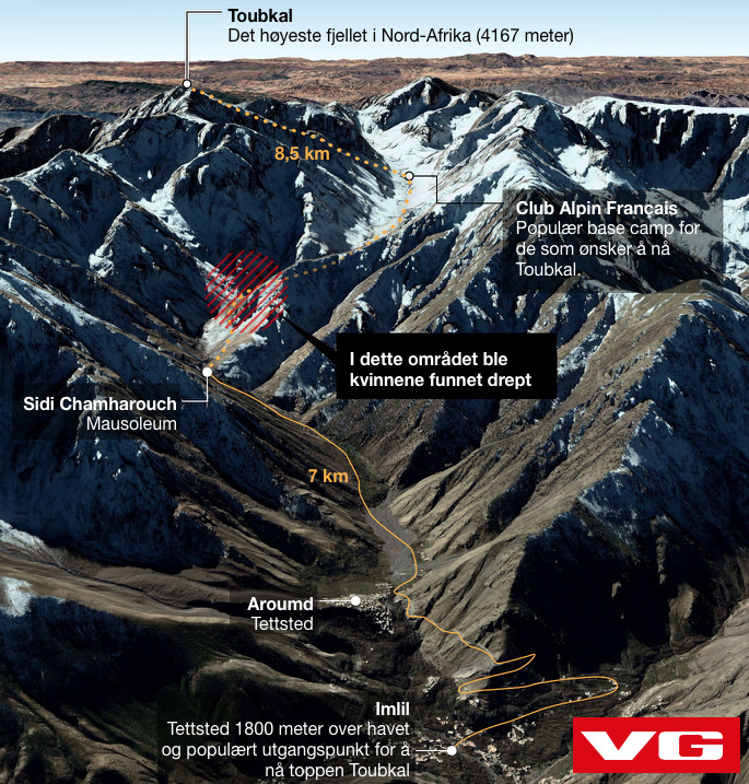 The event in Djanet recalls the brutal killing of two Scandinavian backpackers in December 2018, while camping in the Moroccan High Atlas, below Mt Toubkal (left). In July 2019 the three IS-inspired perpetrators were executed, lifting a 25-year Moroccan moratorium.