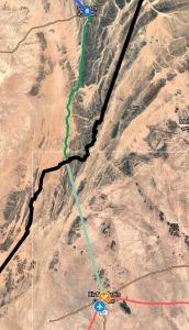 The Smara link to the border line is possible because the 2000-km long Berm built by Morocco to separate and isolate the two Polisario Free Zones (PFZ) cuts across the corner of Mauritania. See map above. Not all maps, not least MINURSO (as of February 2023) depict what is evident on aerial imagery. Who knows how Mauritania felt about this incursion across a far distant and unpopulated corner of its territory.