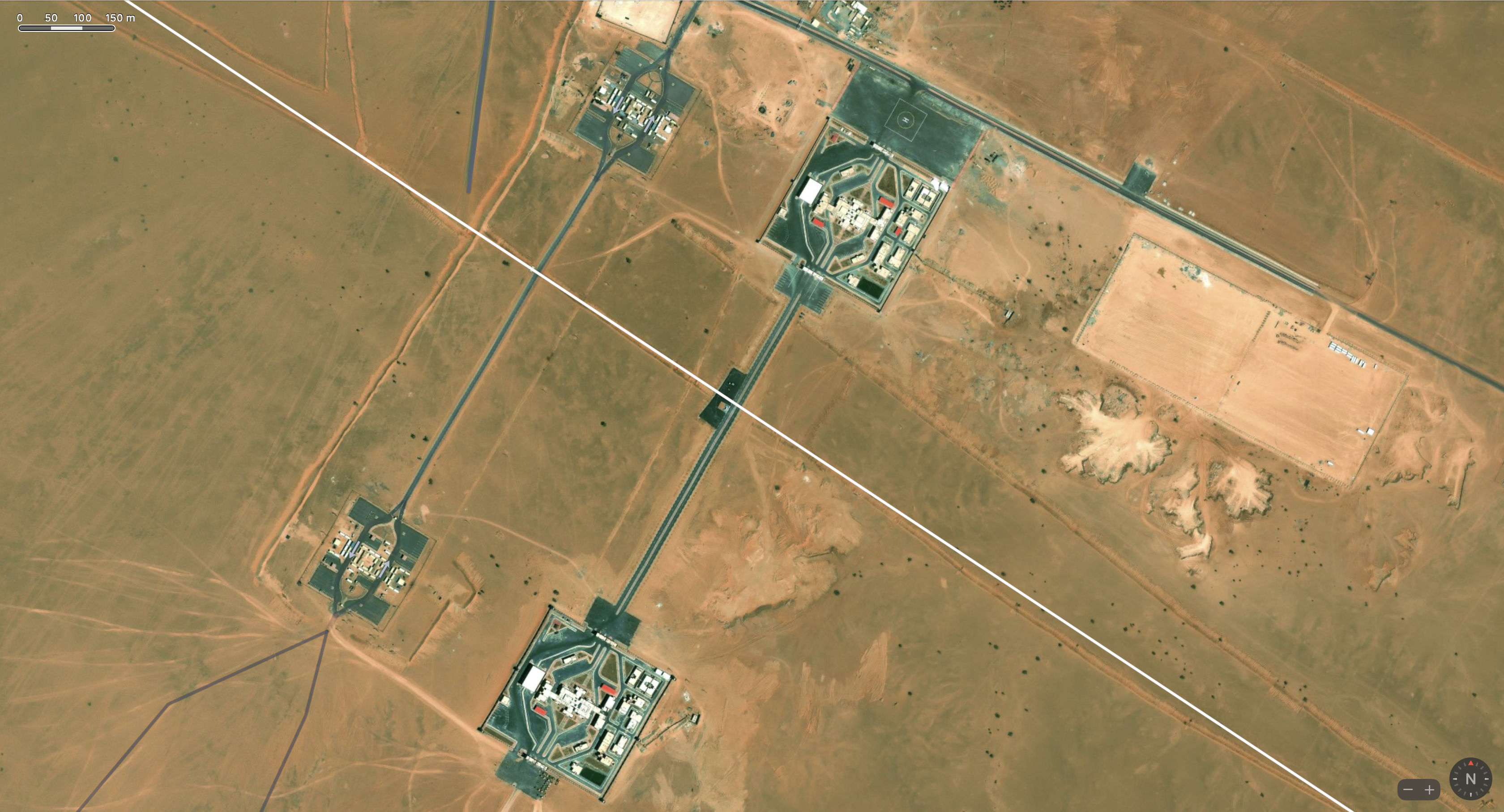The Smara link to the border line is possible because the 2000-km long Berm built by Morocco to separate and isolate the two Polisario Free Zones (PFZ) cuts across the corner of Mauritania. See map above. Not all maps, not least MINURSO (as of February 2023) depict what is evident on aerial imagery. Who knows how Mauritania felt about this incursion across a far distant and unpopulated corner of its territory.