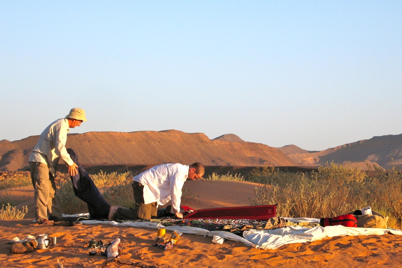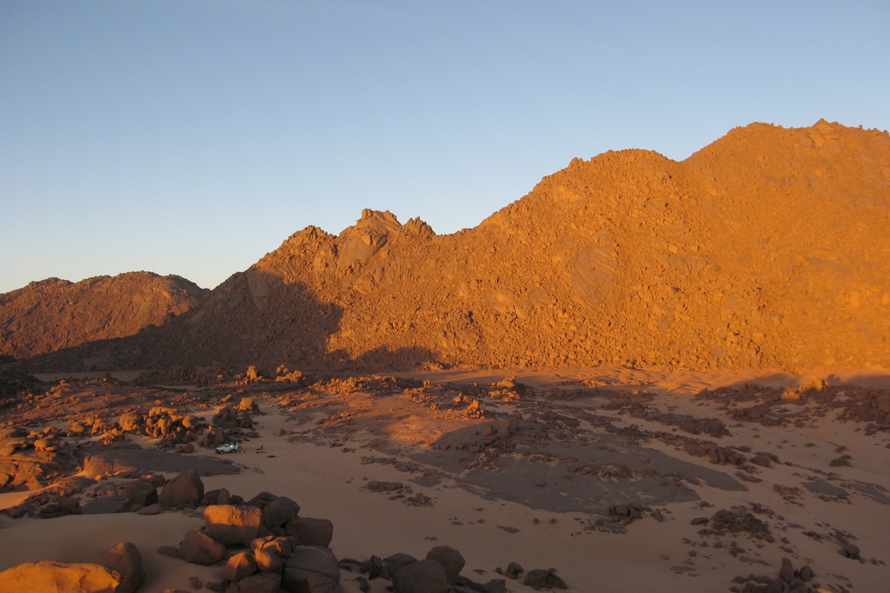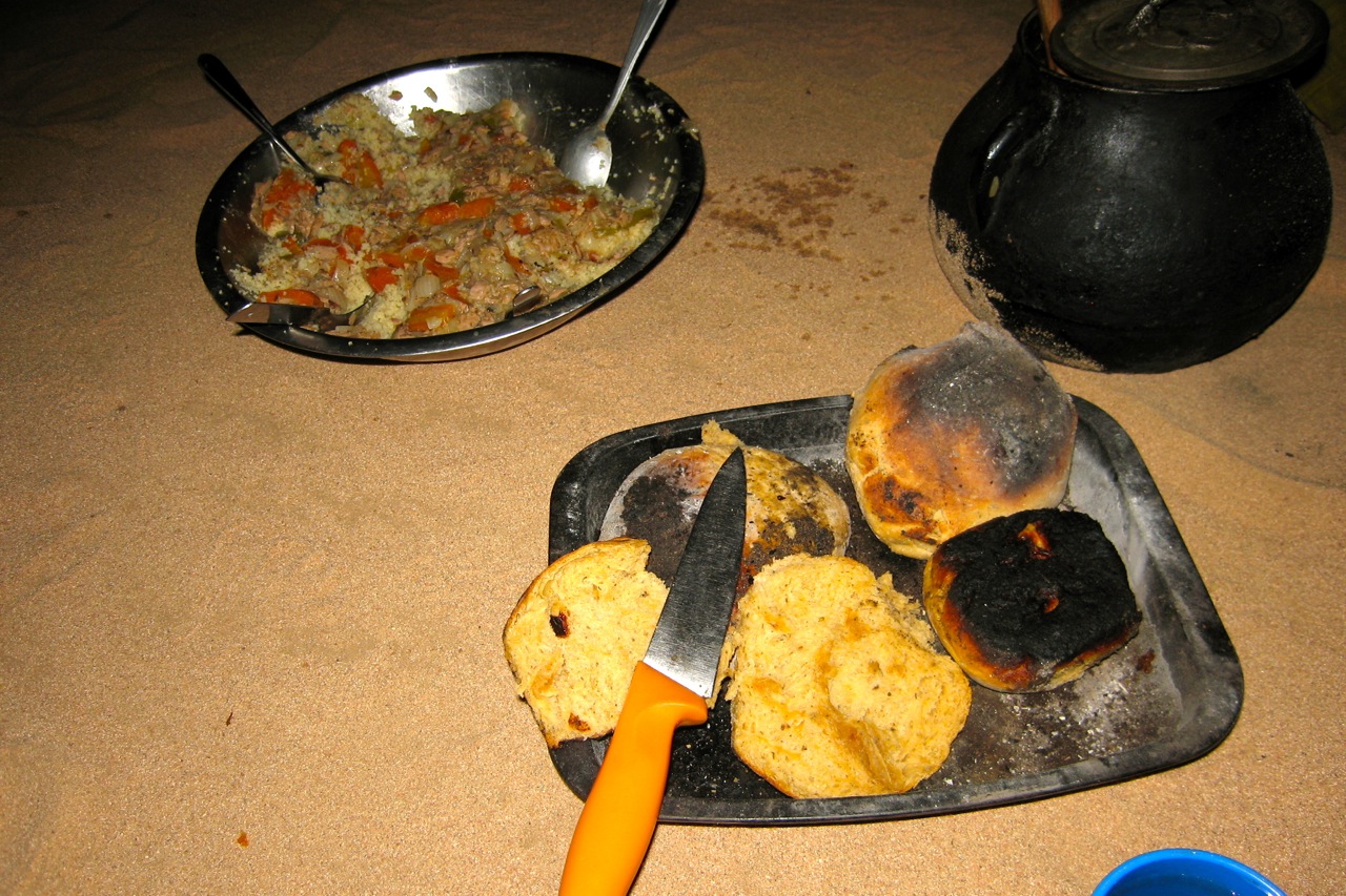 We spent the next night among some granite hills near Abalessa where I finally got round to experimenting with making bread in preparation for SEQ. And for a first go it turned out pretty well – a very passable combination of burned dough cooked in a tin on the embers.
