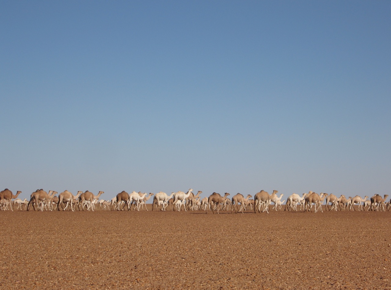Out of Bordj we spent the night among the dunes near Ilafegh wells where we saw a large camel train leaving after being watered. As always, Mohamed can’t resist his nomad’s instincts and chatting up the camel herders to see what and where and so on. I never imagined camels out in the utterly barren Tanezrouft but the recent rains (there were pools here and there) had driven the nomads down in anticipation of a feed. It was to be our only cool night and a real tonic after the unrelenting heat and associated locusts, mozzies, small scorpions and other irksome bugs. Hot days are fine I decided, but hot nights are a drag.