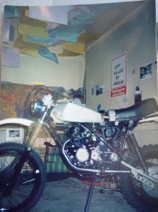 Knowing I was into dirt bikes, a mate put me on to a mate flogging an AJS 370 Stormer (right) for fifty quid. The Stormer was a vile, shin-kicking British two-stroke motocrosser that was the polar extreme of the Benly. In a flash of brilliance which years ago had given birth to the Triton cafe racer cult, I figured I could marry the two and make something more desert rideable and less boring: a Benly-engined, MX-framed desert racer!