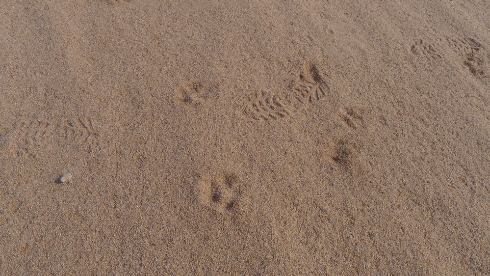 where birds twittered and jackal tracks set hard in the mud. We heard their yelps on a few nights, but I’ve never actually seen one out in the desert. Along the camel trails you’ll regularly find stone slabs laid up into conical ‘goat holders’ to protect them from the overnight jackals.