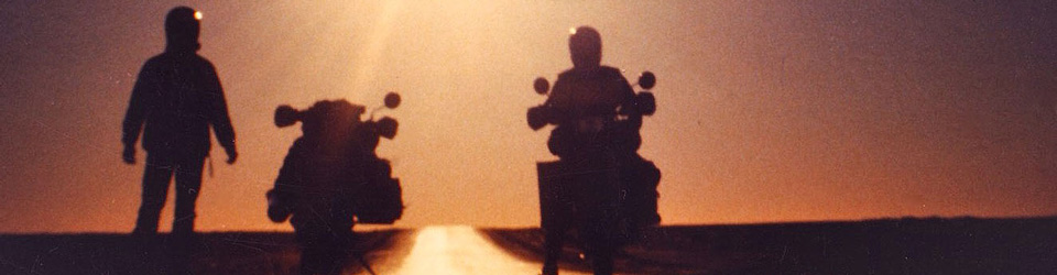 Zoomable Map LinkA chilly desert morning somewhere south of Ghardaia. Further south there isn’t enough humidity to produce overnight frost.Back at those first proper desert dunes north of El Golea (today: El Menia). What a crappy, lashed-up baggage system!I return to Arak where I’d got detained on the enervating Benele trip the previous year for being an idiot.Here I meet German Helmut on an old, ex-police R90 BMW. We are both planning to cross the Sahara so agree to meet up in Tam a couple of days down the road and do it together.A pose south of Arak. full black leathers, HiTec Magnum desert boots, and my dainty British Airways nylon scarf.View of Sli Edrar: my aborted destination on the Benele trip. Even now I was too nervous to ride the 10km across the desert to the hills. What would happen if i hit quicksand?! It takes years to get used to being out there. Or it did me.Sli in 1982 on the XT500 trip.I finally got to Sli Edrar 17 years later from the other side.while laying out fuel caches for Desert Riders.And in 2008 we had a great afternoon riding Sli’s granite domes on one of my epic Algerian bike tours.The worse thing about those rubbish 2-ply Metzeler Saharas, was that I bought a spare. Back then there were no hard-wearing Heidenau K60s or Mitas E09s.In Tamanrasset I meet up with Helmut and we take an overnight excursion up to Assekrem in the Hoggar mountains.Helmut on the R90. The overnighter was a good chance to test our bikes.Sunset from the Hermitage at Assekrem. ‘There was no one there..’.A chilly camp, high up in the bleak Hoggar.On the less used western descent down from Assekrem, near the village of Terhenanet Helmut deftly flips his BMW. The rounded gravel in this particular oued is unlike anything I’ve found in the Sahara. I barely made it across myself.A day or two later, Helmut lightens his load after the lessons of the Assekrem excursion and we set off into the night to cross the Sahara to Niger. We camped a short distance out of Tam in the hope of getting a good run for the 350km to the border in a day.Next morning we come across some Swiss riders. One of them flipped and cartwheeled his 80G/S and and now it won’t start.Helmut knows his BM from his elbow and sorts it out: a barrel flooded with oil. Look at the huge load on that other Tenere compared to mine. This was one of the reasons why I felt it was my duty to write Desert Biking a few years later. That book evolved into the Adventure Motorcycling Handbook.As that day wore on, Helmut got progressively more and more tired from frequently falling off his bike. One final crash around dusk finished him and the BMW off.With his shoulder damaged and so unable to ride, I persuaded him to give his BMW a Viking burial with the loads of spare petrol he had left over.The remains of Helmut’s trans-Sahara ride next morning. We abandoned most of his gear and he squeezed on the back of my XT. It was galling for him; he came off quite a lot worse than I did on my first attempt at crossing the Sahara in 1982 on an XT500.After leaving Helmut at In Guezzam, the Algerian border post, I set off across No Man’s Land for Assamaka: the Niger border. It was New Year’s Day, 1986 and the Dakar Rally was leaving Paris.As I say in Desert Travels, the Sahara Handbook of the time warned of the very sandy conditions in No Man’s Land, but in fact the terrain wasn’t so bad. When things are tough or in times of stress I tend to press on; when they ease up I feel it’s safe to stop for a breather. So even though it wasted precious film, I had the notion to take some aerial selfies by setting the camera on self timer and throwing it up in the air.Most shots were of gravel or sky, but here’s a superb pre-drone-era snap of the Tenere from 20 feet up.After checking into Niger at Assamaka – a portacabin and mud hut in the middle of nowhere, next day I got lost on the last 200-km stretch to Arlit where the road resumed. And not only that but just before I got there, my canvas baggage caught fire (pressing on the pipe; the usual story). One pannier burns merrily in the stiff Saharan breeze.I wasn’t carrying that much stuff; now I had a bit less. Notice the H4 light bulb.My first Saharan crossing had been quite eventful. See the Google Map.A few days later I arrived at the banks of the Niger river. West Africa was a whole different vibe from the Sahara and North Africa.After struggling along the very sandy riverside track from Niamey (Niger) into Mali, I camped on some dunes above the river. As the sun set, over the river I could hear drums beating in the villages.Next morning I reached Gao, located the ferry over the Niger (there’s a bridge now), and headed straight to Bamako as my Mali visa only lasted a week. But I got a puncture and encountered the Blue Man as described in the book. From here on I’d have many punctures from thorns I picked up while battling along the sandy bush track to Gao.The famous monoliths near Hombori, Mali.Another monolith in the morning haze.The fabulous Grand Mosque of Djenne (not my picture, can you tell?).I’m now sick with the shits but need to rush on to Senegal before the visa expires. In Bamako I gave up trying to get my bike on the train to Dakar, as most people did back then because the roads were so bad. So I take the direct route to Kayes and the border. After all, I’ve crossed the Sahara and am on a trail bike, how hard can it be?The track follows the Dakar railway which helped with orientation. Just as well as I got lost again and again. Unlike the desert, there are loads of bush tracks linking village to village.Waiting for the non-existent ferry at Bafoulabe. After a while I realised there was a bridge just upriver. How else would the train get across. You can see my perspex numberplate has succumbed to the piste; a common problem. Small metal plates are better.Rough tracks in west Mali heading towards Kayes. Few people took this route and I don’t recall passing any other 