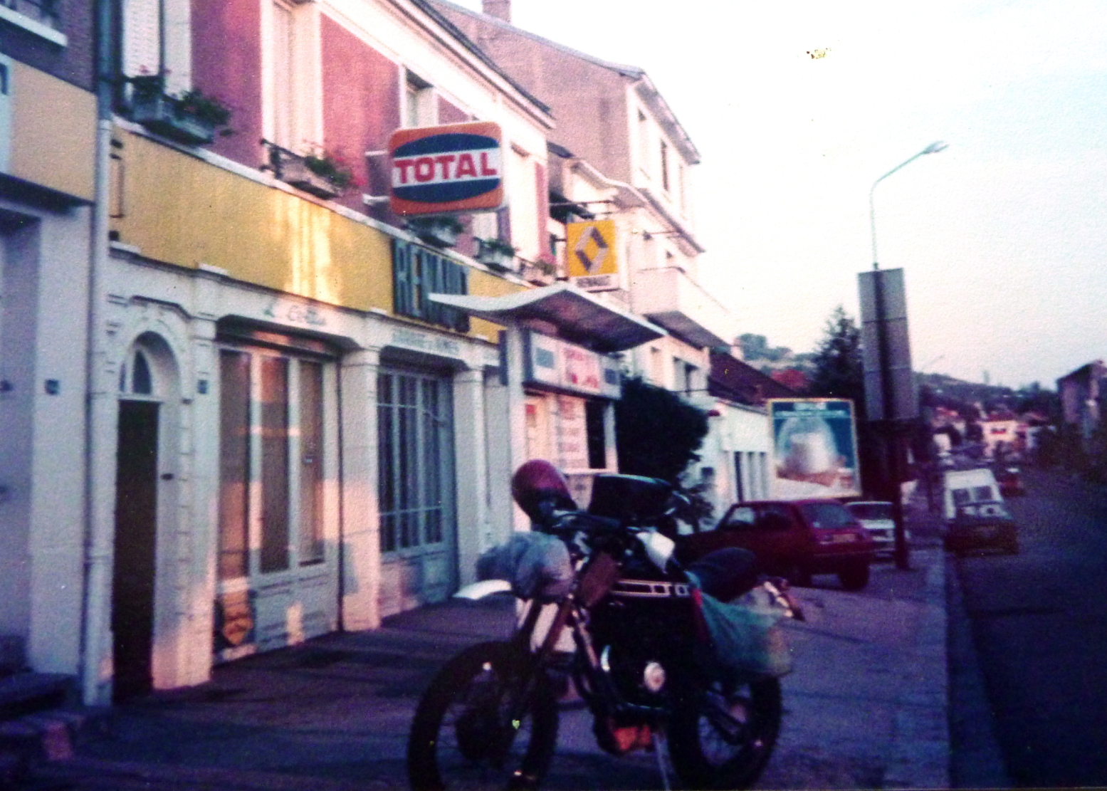My goal that year was a mysterious massif of conical peaks which I’d passed by, south of Arak on my way to Tamanrasset in 1982 and which I’ve since learned is called Sli Edrar. The Bénélé’s top speed was no more than 53mph, and even at that speed it felt unsafe, should a squirrel run out in front of me. So to get a good run-up I rode straight from work on Friday night down to a mate’s in Canterbury, close to the port of Dover, ready to catch an early Dover ferry next morning.