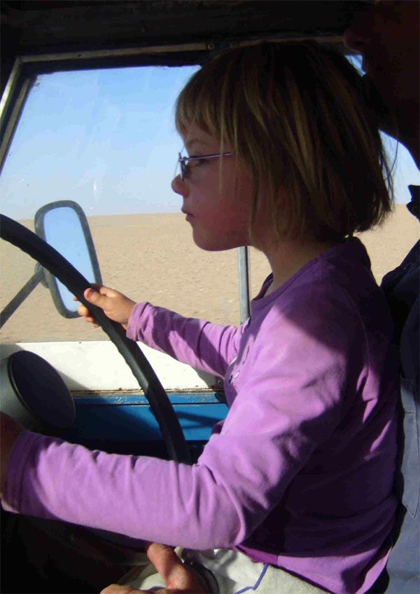 Taking a car down to southern Algeria from the UK is, when you add up the costs of a guide from the border, the ferries and the fuel through Europe, only marginally less expensive than spending 130 euros a day on a local vehicle. Given the wear and tear to your own vehicle, it probably works out to be a lot more expensive. But a number of things make it attractive to drive down. First, one can take a lot of things with you that are nice to have. We took camping chairs, a table, tents for nights when the wind was strong, food that you can’t get in the south (including coffee, tea, savoury biscuits, packet soup), Christmas presents for the kids, balls to mess about with, medical kit, water containers for the piste, a cooking stove, GPS, satellite phones, books for the children to read. All these things helped to smooth out the bumps but would have been difficult to include in the 20kg baggage allowance. Also, as mentioned earlier, the Land Rover was a home away from home for the youngsters. They really enjoyed sleeping in the back.