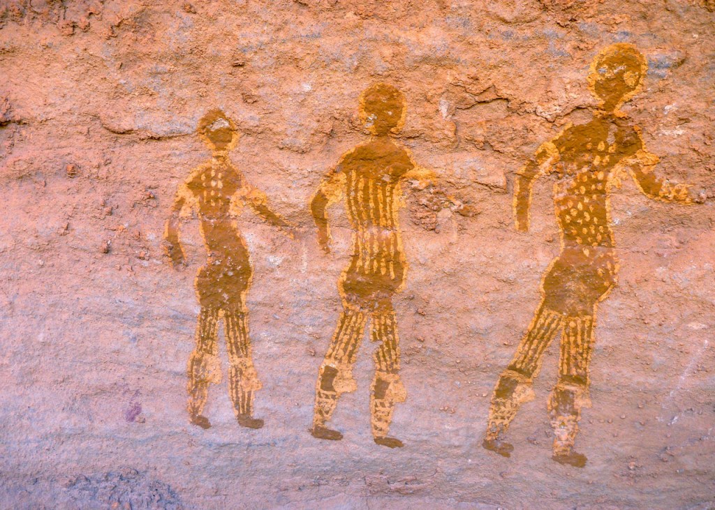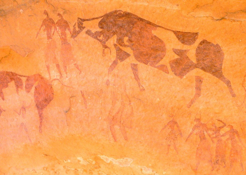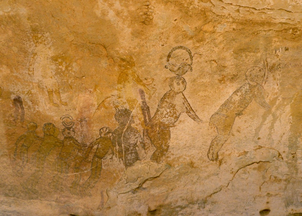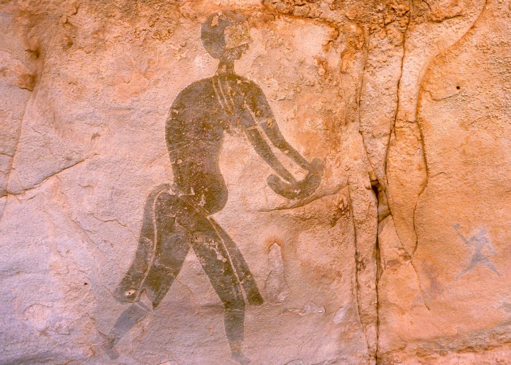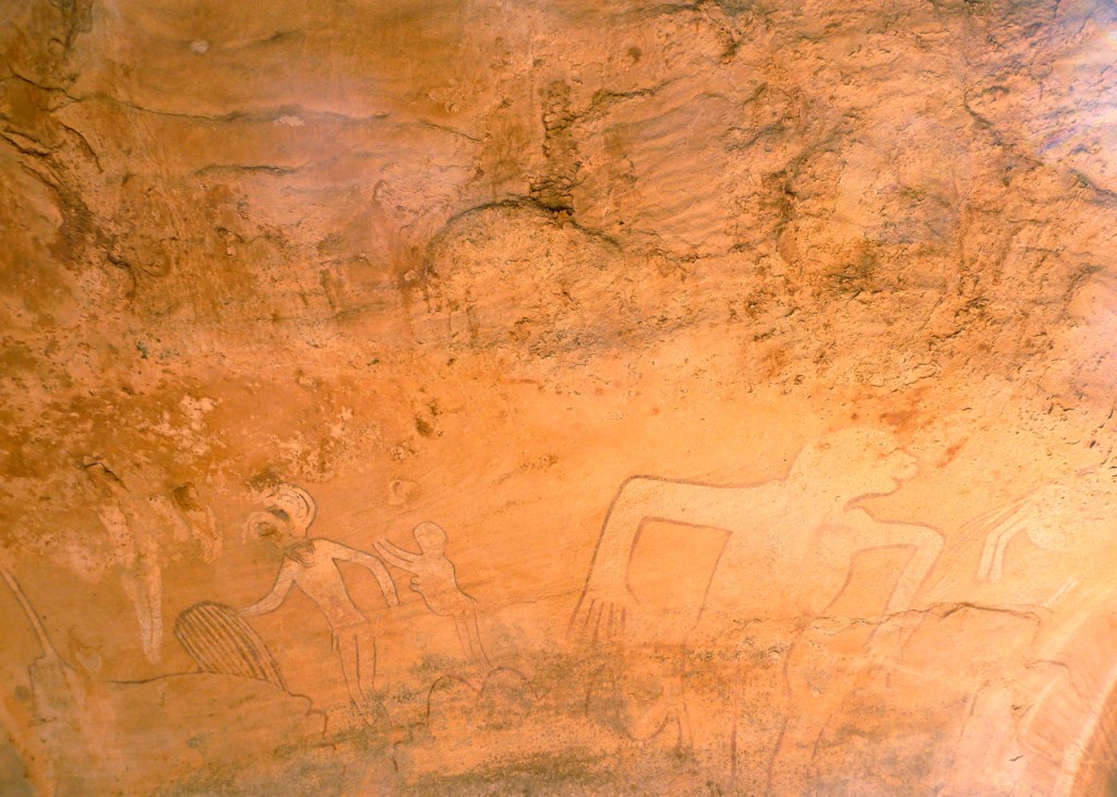 Short of time we got the Zeriba to organise a one day walk on the Tassili Plateau to Jabbaren, supposedly the second most important site of prehistoric rock art (5,700 AD for the two of us with a guide). The walk was beautiful and if you are time-constrained, there is a lot of art in a small area. One day was manageable – we left at 0600 and were back by 1730, tired but certainly not shattered. We didn’t want to spend another night at the Zeriba so camped in the dunes just outside Djanet.