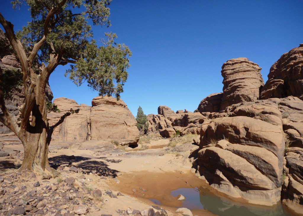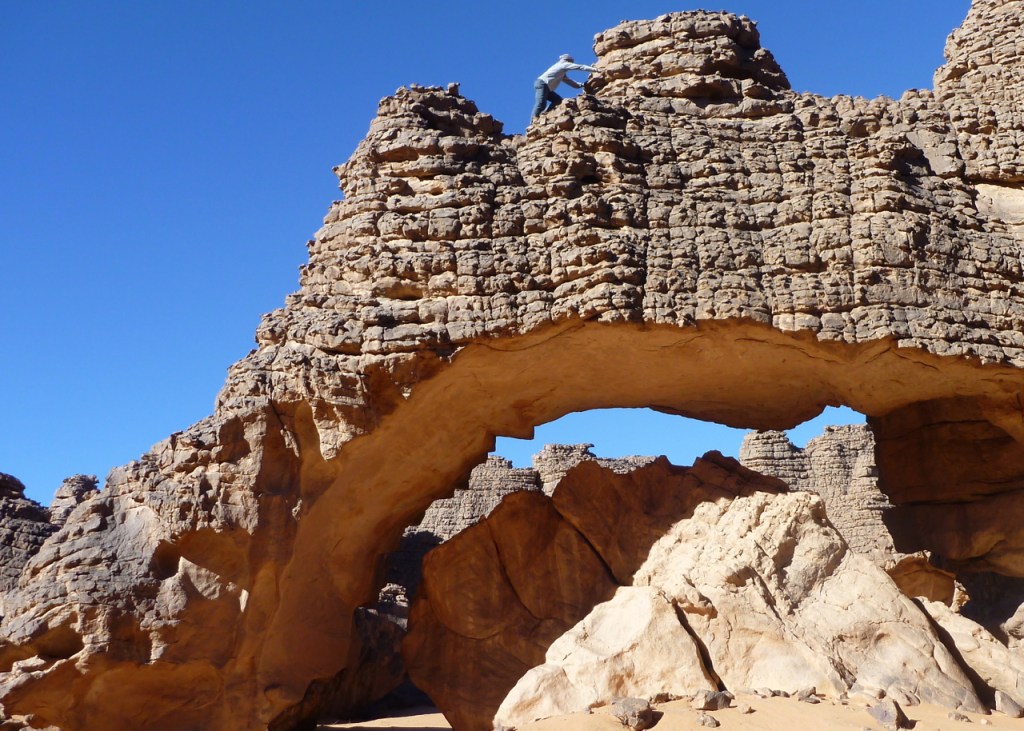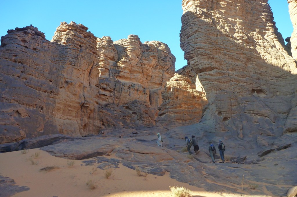 We did a three day circuit with a guide from Awiss tours, based at Mohammed’s campsite in Ghat. Awiss Tours are a family of Tuareg who clearly know the area well and entertained us royally. Camel tours appear to be their specialty. The landscape was stunning and we think we saw most of the highlights but four days would have been more comfortable. Our only gripe was that our guide, Cheick, the youngest brother, wouldn’t stop talking and he became very irritating.