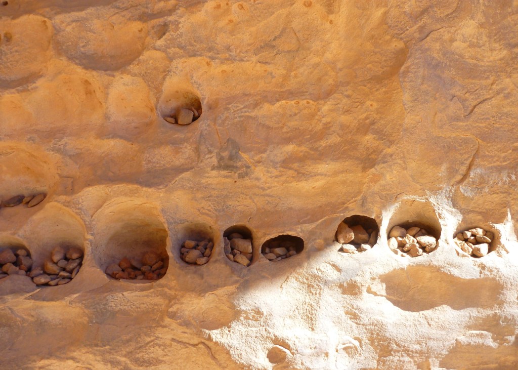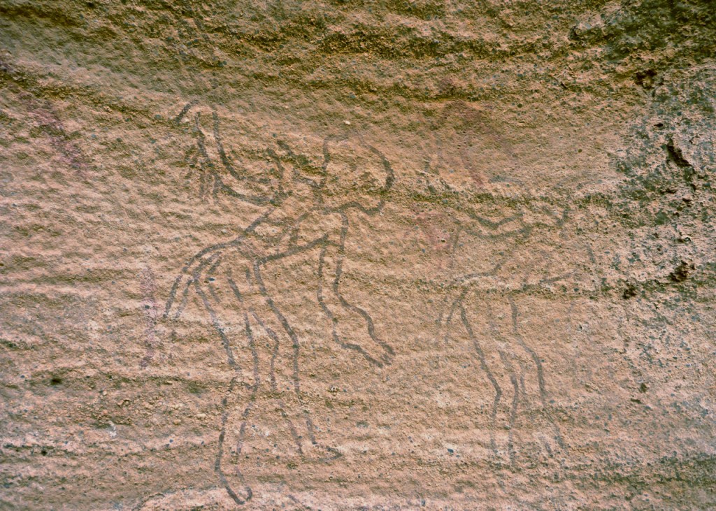 The following day we went on to see the prehistoric rock art at the Wadi Mathendous. We asked the caretaker of the Germa museum about permits for the site and he sold us two tickets for 6 LD. The police at the Km 128 checkpoint didn’t recognise these and wanted us to have a permit from the Germa police but they let us through anyway. We shared the Wadi with a pair of howling jackals that night.