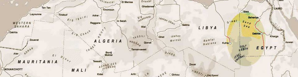 On the left, the 1983 edition of the Paris-Dakar crossed the Fadnoun on its way to Djanet and the Tenere beyond.