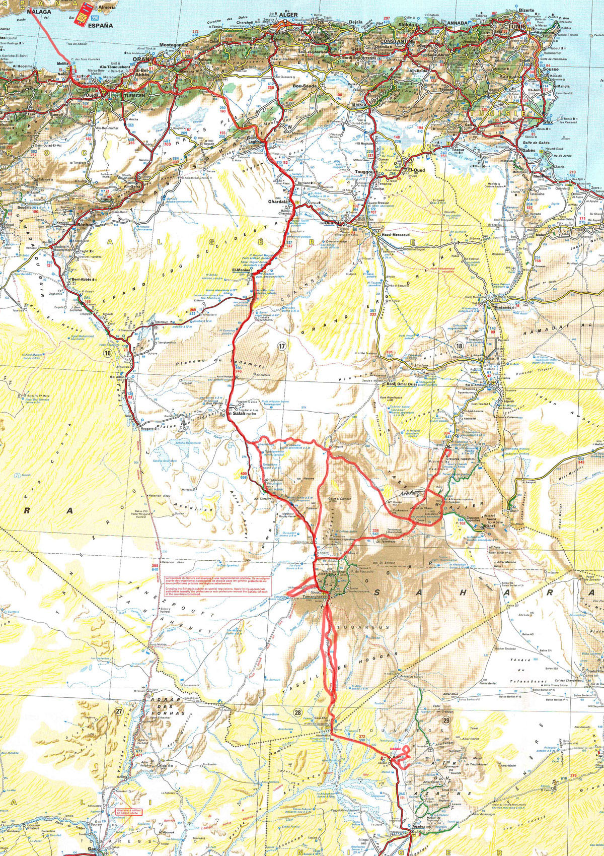 As on previous occasions, the route of our camel trek through the Immidir will rest a day at Aguelmam Rahla, a reliable waterhole at the mouth of the Oued Tafrakrek canyon (blue line on map, left) where the Tissedit plateau drops down to meet a band of dunes. I’d been wanting to make a diversion here since scanning Google Earth a few years back and noticing the innumerable pre-Islamic tombs (‘PIZ’) in the area (below).