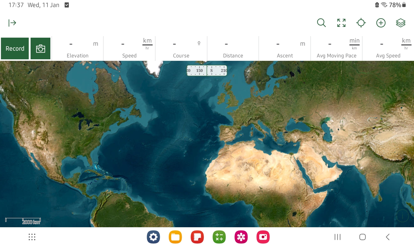 Note: it is possible I’ve yet to fully get to grips with Samsung and Gaia. I worked all this out by diving in and flailing around like a beached haddock; a good way to test how intuitive it all is. Pay your Gaia GPS subscription, log in and browse maps by one of four activities from the ‘Layers’ tab top right: Hiking, Overlanding, Pushbiking, Weather & Misc; there are at least a dozen maps for each. The selection is inevitably US-centric: see which best suits you. All you really need for Sahara is one good topo map and a satellite layer.
