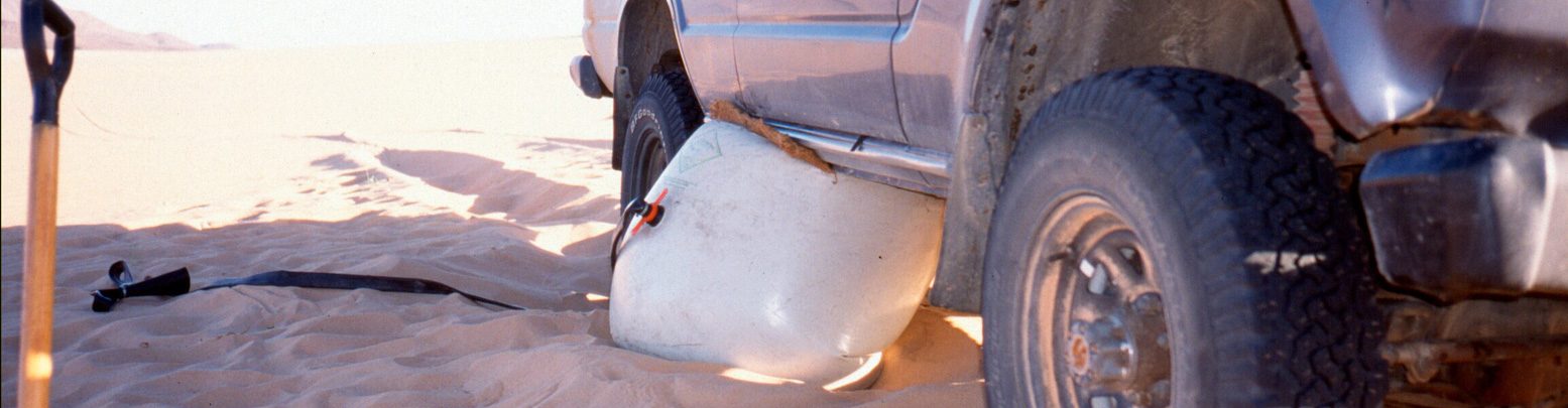 The Saviems of 1997 made a pretty good job of it once they left Mali, planting at least 25 of their distinctive blue and white balises across the desert is a bid to establish a new lateral trade route across the width of the Sahara. The value of that is clearly rather dubious, but it was a good excuse to promote the lorries and have a big Sahara nadventure, using trials bikes and even parascenders to help recce the route ahead.