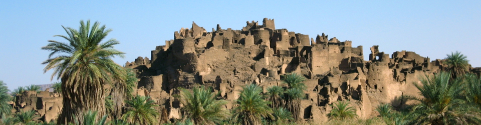 Djado (photo Klaus W.) is a huge complex which must have housed thousands a few centuries ago. In winter it’s surrounded by a lake of brackish water which I’m told oddly, disappears in the rainy season. In autumn the whole of Chirfa moves here to harvest the dates from the many palms; their zeriba huts ring the ancient ruins.