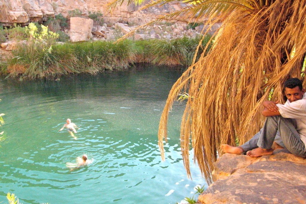 At Algiers port they were a bit bemused by a tourist car (we were the only foreigners on the boat), but despite 4-5 hours queuing, we got to In Salah the next afternoon and from there took a great run along the Old Hoggar piste east of the TS highway, past old Hassi el-Khenig to a camp and a splash at the lovely guelta of Tiguelguemine (right). Next morning a little scorpion ran out from under the mattress to be nabbed in seconds by a pair of moula moula birds.