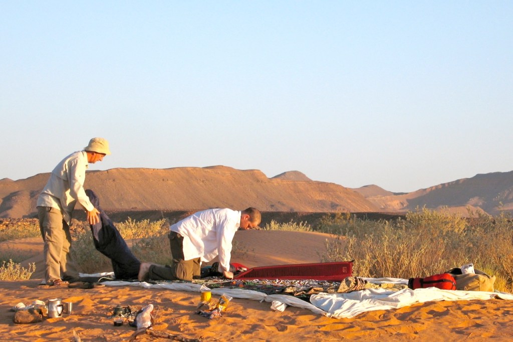 Ikhalil looked like a Van Damme movie set where, if you let your imagination off the leash, a dusty cover gets pulled back off a Merc truck to reveal a shiny Russian Vympel A-350 missile for sale to the highest bidder. The guys here were all Mohamed’s mates, Berabish traders from Timbuktu doing direct runs there and back, and even across to Zouerat (Mauritania) with cigs and other contraband. Their welcome was warm and we discussed my forthcoming crossing of northern Mali from Mauritania. To get bossman Bou on my side I’d brought him a nice solar panel and a couple of Thuraya sat phones – the ‘iPhones’ of the Sahara. He and his cohorts will prove to be a useful contacts if we got in trouble in Mali next month [we did and they were…] as well as being a source of much-needed fuel after our 2000-km crossing from Atar. Ikhalil 2010 – not so rosey