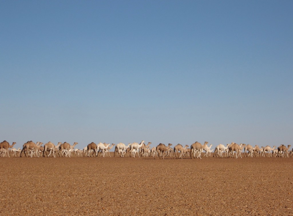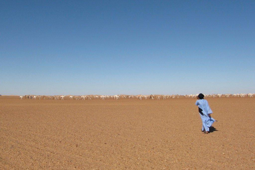 Out of Bordj we spent the night among the dunes near Ilafegh wells where we saw a huge camel train leaving after being watered. As always, Mohamed couldn’t resist his nomad’s instincts and chatted up the camel herders to see what and where and who. I never imagined camels out in the utterly barren Tanezrouft, but the recent rains (there were pools here and there) had driven the nomads down in anticipation of a feed. It was to be our only cool night and a real tonic after the unrelenting heat and associated locusts, mozzies, small scorpions and other irksome bugs. Hot days are fine I decided, but hot nights are a drag.